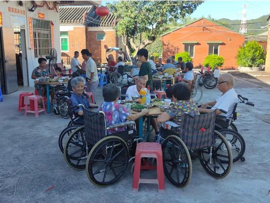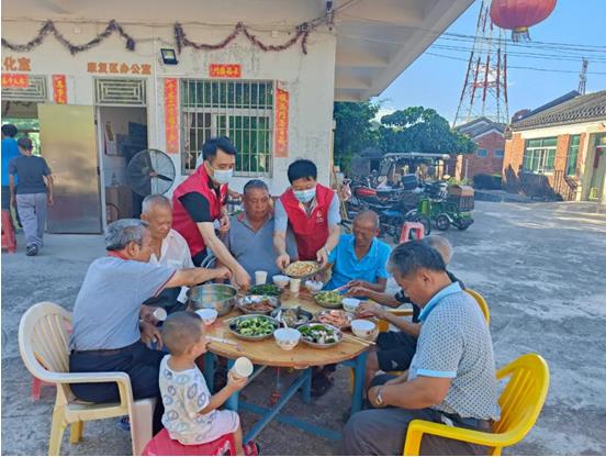 公司為老人們準備了大米、牛奶、食用油、紙巾等慰問品,陪老人們嘮家常,關心詢問老人們的身體狀況,并為老人們在村里食堂準備了豐盛可口的晚宴。不斷在來回穿梭忙碌的身影給平日清凈的村落帶來了久違的歡聲笑語。