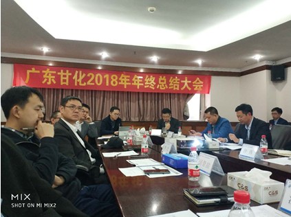 2019年1月25日,廣東甘化召開2018年年終總結大會,總結部署2018、 2019年工作。會場設在江門,公司經營班子成員、中層干部、子公司沈陽含能和四川升華高管共計30人參加了此次會議。會議由公司企管部總監張琛主持。