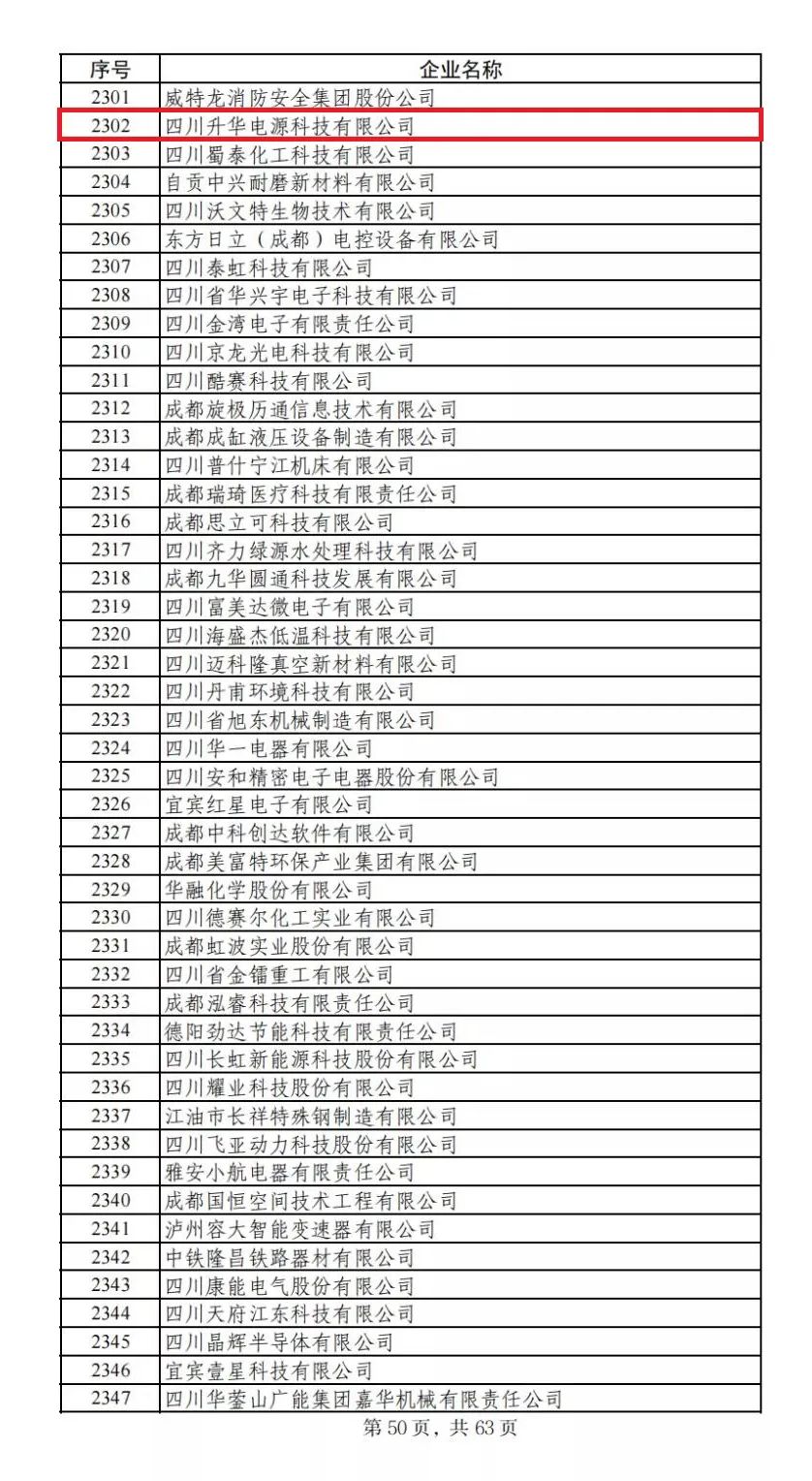 近日,工業和信息化部公示了第三批專精特新“小巨人”企業名單,甘化科工全資子公司四川升華電源科技有限公司上榜。